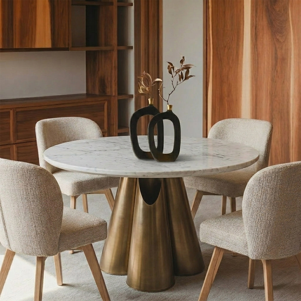 Duster Marble 6 Seater Dining Table with Iron - Brass