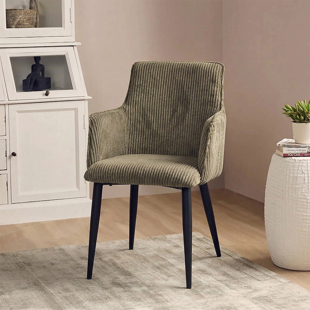 Antho Velvet Dining Chair with Wooden Armrest - Olive Green
