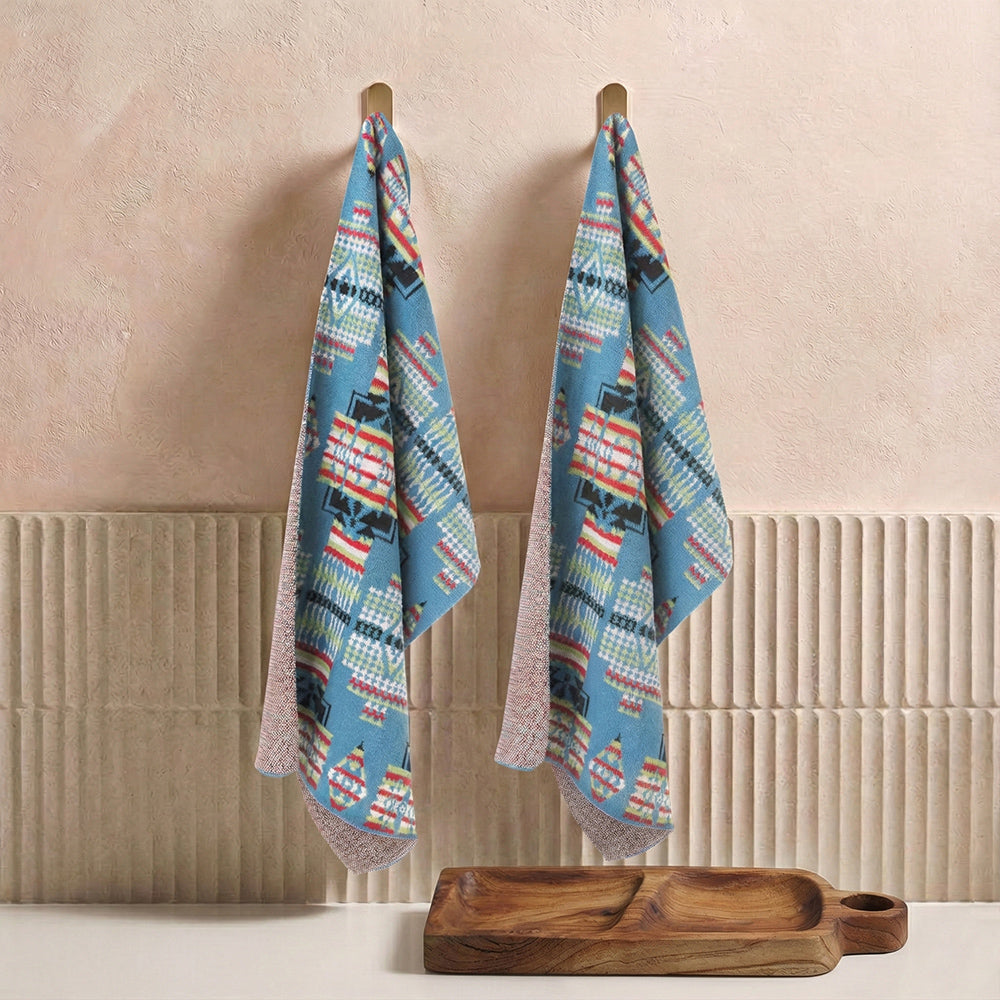 Mesa Mirage Knitted Cotton Kitchen Towel '' Set Of 2 '' In Aztec Blue